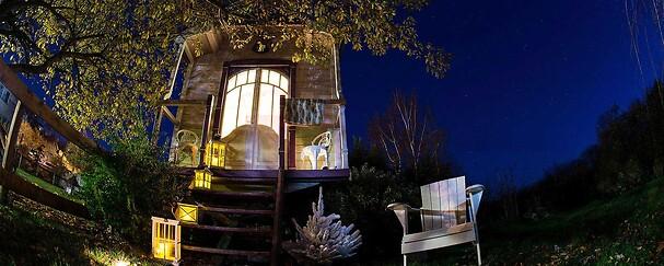 Insolite près de Soissons : roulotte bohème et spa-piscine de luxe