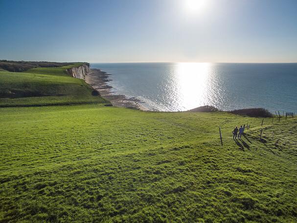 J’habite le territoire depuis mes 5 ans, et je l’aime d’un amour sincère – oui, même ses galets (ça fait mal aux pieds, mais au moins on ne les retrouve pas partout dans la voiture). Entre mer, falaises, forêts et campagne, j’ai trouvé ici un terrain de jeu grandeur nature. Les points de vue depuis nos falaises ? Une vraie thérapie : ça me permet de prendre de la hauteur sur la vie. Je reste toujours émerveillée par leur grandeur et leurs couleurs qui changent au fil des saisons.
