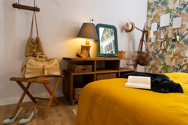 Aux 1er et 2ème étages, se trouve votre chambre pour la nuit : Solène dans les tons gris, ocre, et pourpre, Emilien aux teintes noires et jaunes ou Héloïse dans son ambiance bord de mer... Chacune avec sa propre salle de douche et le charme des meubles patinés par Corinne.